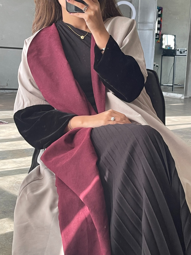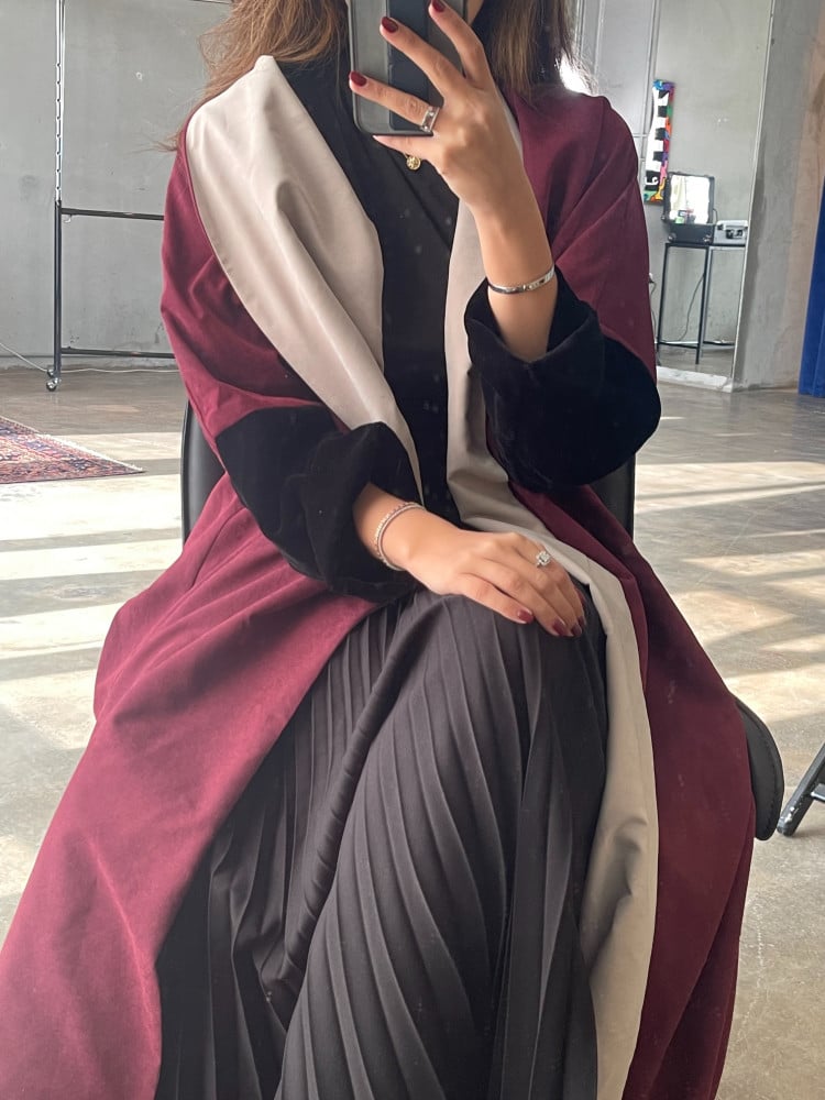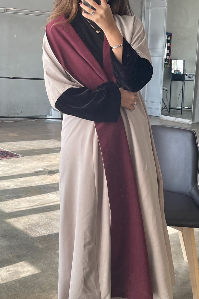 عباية يمكن لبسها بجهتين : بيج وعنابي